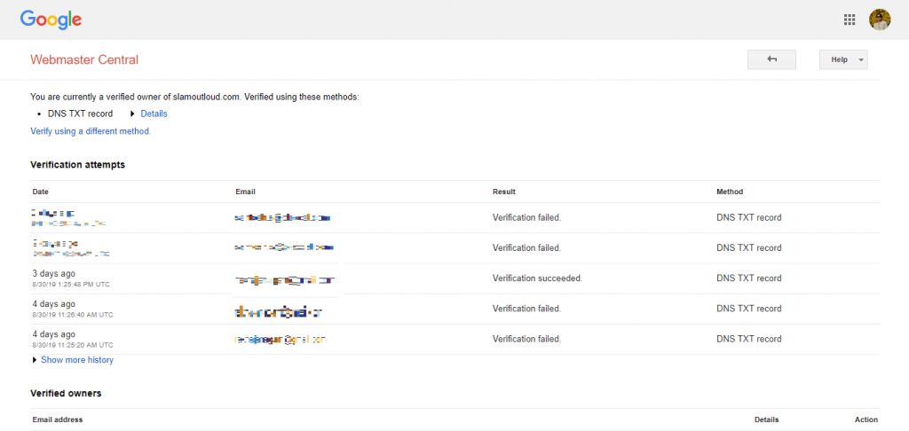 Step7: After deleting the plugin, we re-verified with google webmaster. It took about 12-14 hours for the verification cycle to complete.