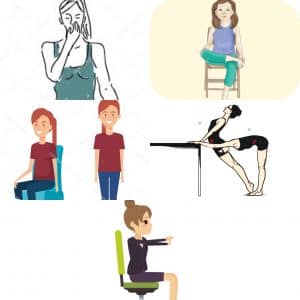 Poses: Pranayama, Sit & stand chair pose, desk upward dog pose, wrist & finger stretches, chair pigeon pose.